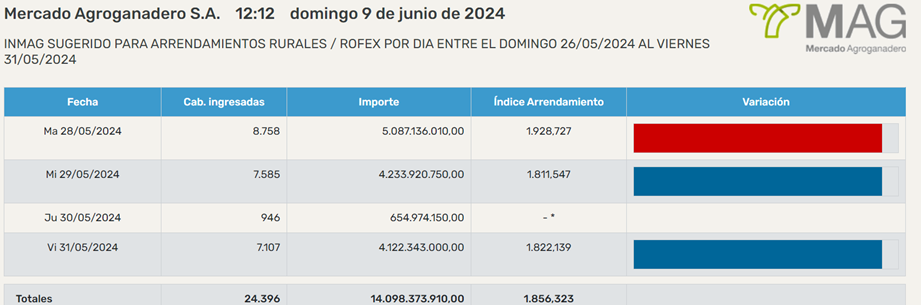 El Ministerio de Agricultura y Ganadería (MAG) ha publicado los índices de arrendamiento sugeridos para los arrendamientos rurales pagaderos en junio de 2024.
