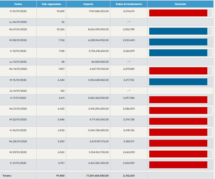Para los acuerdos de arrendamiento que utilizan como base el mes completo de Enero 2025, el MAG ha fijado un índice de 2.312,501.